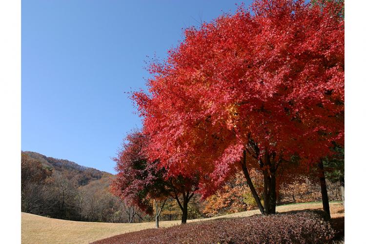 Description: Golfscape staff worked closely with Robert Trent Jones II on the Oak Valley Country Club courses which are part of the Hansol Eco-Resort in Korea. The landscape design focused on reforestation of native trees throughout the golf course as well as mass plantings of colorful cherry trees, fruit trees and rhododendrons.